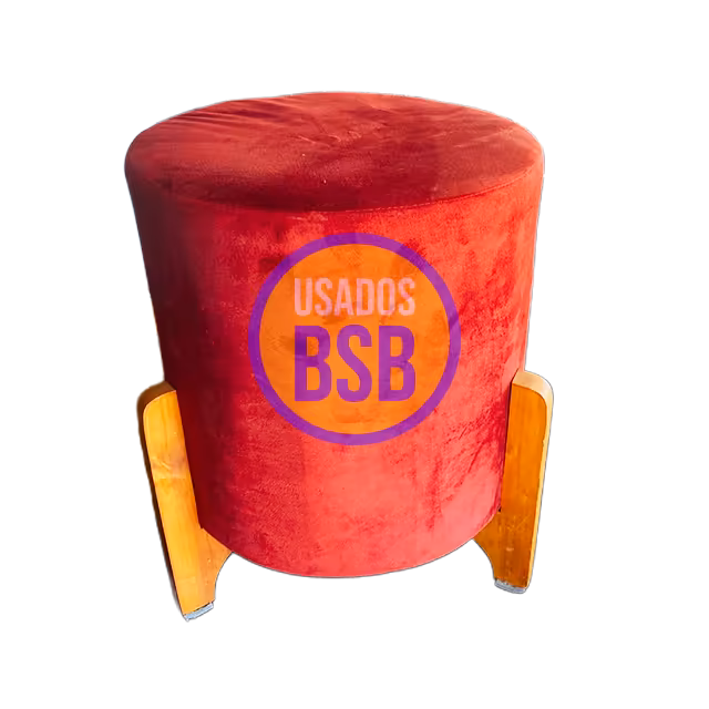 Procurando um assento extra ou um elemento decorativo sem gastar muito? Este puff redondo é uma excelente escolha. O revestimento em tecido na cor marsala está em excelente estado e oferece um toque macio e elegante ao ambiente. A estrutura é firme, apoiada em três pés de madeira maciça que garantem estabilidade.